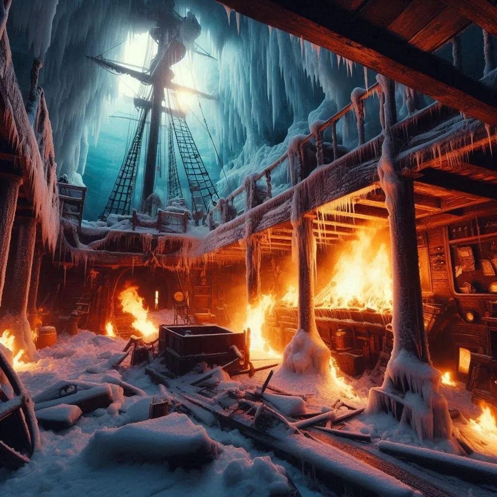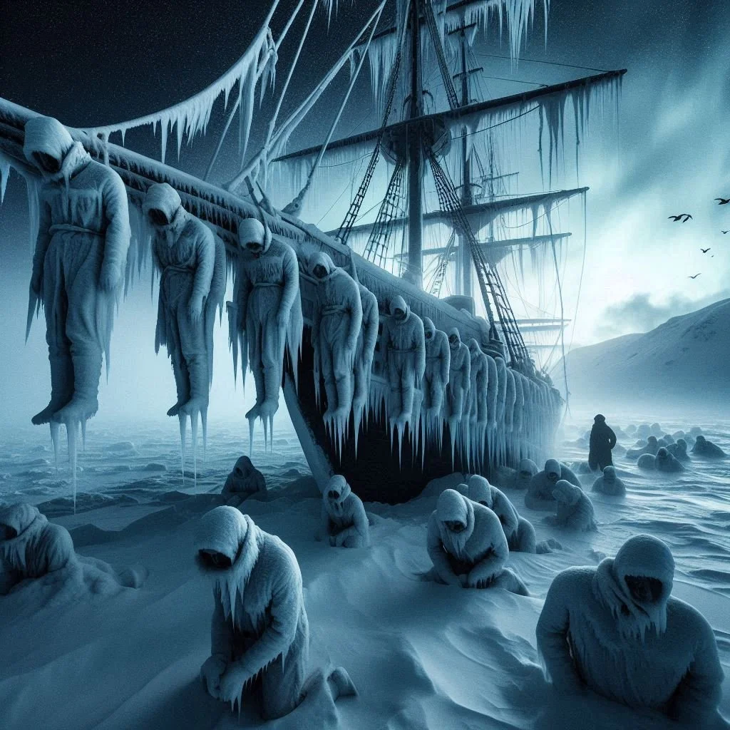 As our sailors tell this violent tale of treachery and obsessive ambition, the harsh conditions surrounding them have pushed their story telling to the utmost extreme. How many men have already died? Has the cold and hunger pushed them into hallucinatory and chaotic states?